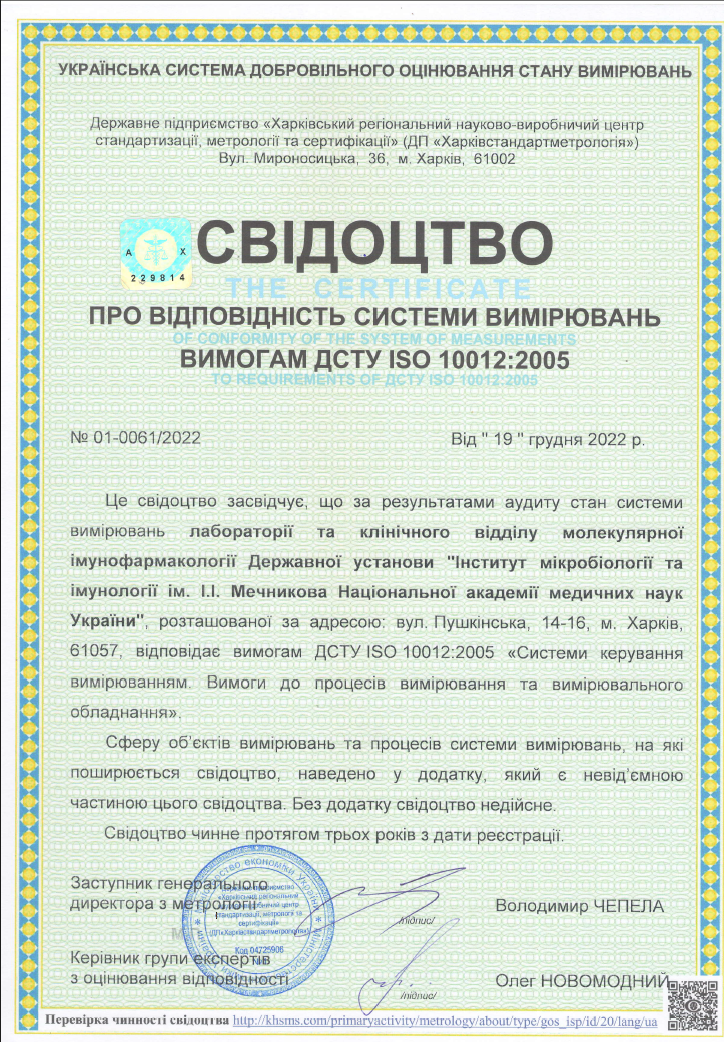 IMINAMSU, Laboratory and clinical department of molecular immunopharmacology. 14-16 - G.Skovorody St., Kharkiv, 61057, Ukraine